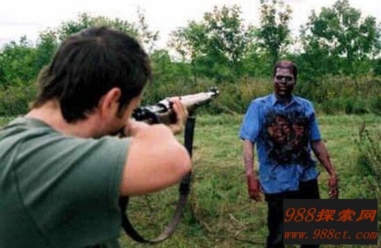 果然没过多久在视频上方出现两个人,肢体行动较为怪异,看起来就像僵尸一样,疯狂的向那名持枪的男子跑去,而且丝毫不怕子弹的打击,中枪了也像没事一样,由此可见这些僵尸和电影中的丧尸一模一样。