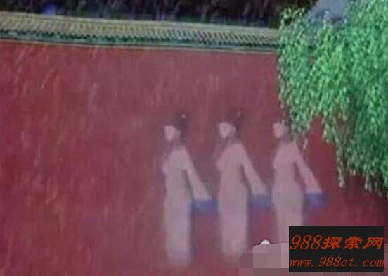 在1992年某一天,天上打雷之时故宫墙壁上出现了宫女。当时在场许多游客都看的目瞪口呆,这还是头一次见到如此场景,难道是宫女们穿越了。原来之所以会出现这样景象,是因为红色宫墙含有四氧化三铁,在打雷时宫女刚好经过于是被录下来宫女影子。