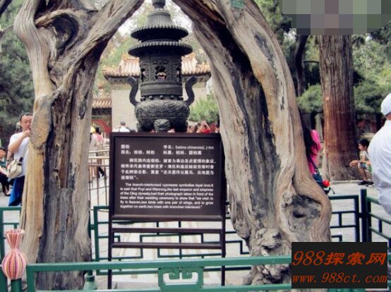 游览过故宫都知道,在坤宁门北边有一颗连理树,据说这棵树可是带有诅咒的。因为当时清末皇帝溥仪和婉容就在这棵树合影留念过,之后命运大家都清楚吧。许多情侣在这里一起拍照后都分手了,所以显得非常诡异。大家注意一定不可在这里进行拍照哦。