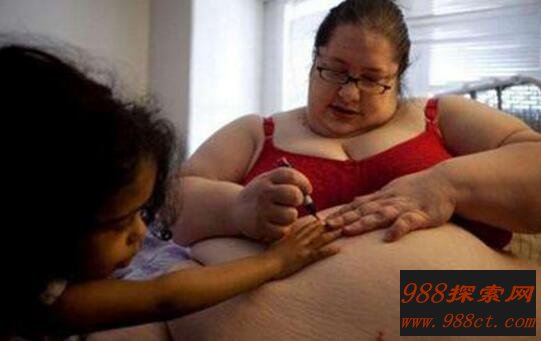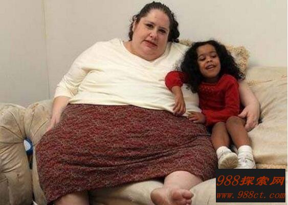 44岁的美国新泽西州妇女唐娜·辛普森体重有903斤,是网上有名的“半吨肥妈”。她从小就有暴饮暴食的习惯,9岁时她的体重已达到82公斤。2006年,唐娜和男友菲利普认识仅3个月后,就怀上身孕。2007年2月,当唐娜生下体重4.02公斤的女儿杰奎琳时,体重已经高达235公斤,成为有史以来最重的产妇。