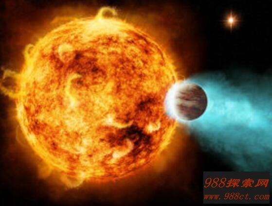 CoRoT-2a行星全年处于恒星强大X射线辐射的控制之下,如此强烈的作用导致该行星上每秒失去大约500万吨物质,这显然是一个不折不扣的死亡星球。这颗行星的特性与咱们银河系中的木星非常类似,也是属于是的液态巨行星,不过它实在是距离恒星太近了,只有420万公里,不足太阳和地球距离的3%。所以说这是一颗“火球”毫不为过,其表面温度简直就像是火焰山的感觉了!