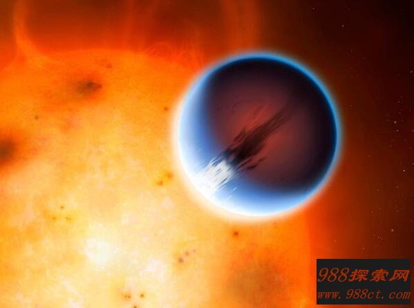 HD189733b距离地球大约60光年,哈勃望远镜观测发现这颗行星可能笼罩在恒星氢核聚变中,因为它们靠得太近了,表面已经被完全“烧焦”。