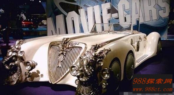 在这部电影中,印度船长有着先进的科技,善于打造精密的武器和机械,并且都非常的漂亮,这车只是他的代步工具而已,这辆车是专门为这部电影设计的,确实世界仅此一辆,但是是白色的,再细看看这张流传许久的照片,黄金跑车后面的布景板上写着电影车。