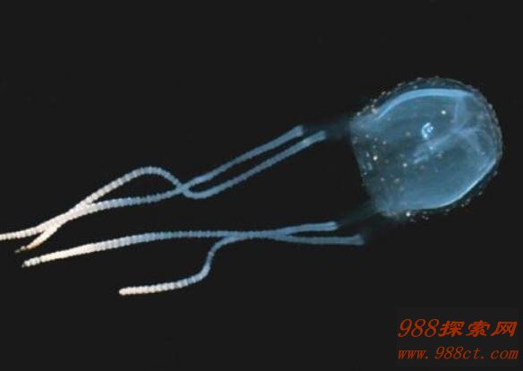 若有人碰到方水母身上的微小细胞,可能会很快死亡。在澳大利亚昆士兰州沿海,25年来因中方水母中毒而身亡的人数约有60人,可与此同时死于鲨鱼之腹的只有13人。也就是说这些小家伙的威胁要比大白鲨还要大,目前唯一能够避免遭受方水母攻击的方法,就是避免在这种水母出没的海域游泳,是让人都退避三舍的可怕家伙。