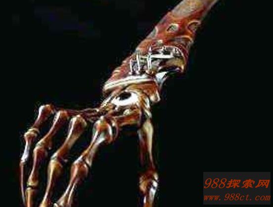鬼手这把刀来源十四世纪意大利一个疯狂铁匠铸造的,当时在铸造的时候将自己妻子右手砍下并做成刀柄,之后又将儿子肋骨做成刀刃,最后将自己小腿骨做成刀柄。在完成这个刀后将其献给债主,这位债主在得到刀后将全家人都烧死了。在传闻上只要得到这种刀,就会全家死光。