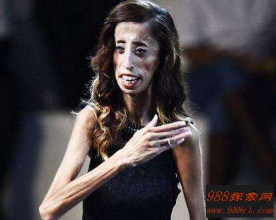 图中这位叫丽兹女人是来自美国德克萨斯州,据称是世界上第一丑的女人。看起来不但长相十分怪异,而且瘦的不成人样。她得体重为50斤上下,身高为1.57米,全身上下都是皮包肉骨,没有一处地方是含有脂肪的。右眼处于失明状态,眼珠外凸,长有一副大龅牙。