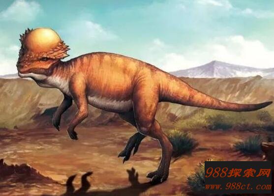 肿头龙大多生活在距今约六千七百万年前,外形上形似鸟脚类恐龙的一种,体长为5米,体重为1.5吨,靠着两条粗壮后腿走路。这种恐龙常以群居生活,主要吃树叶、种子、水果、以及昆虫等混合食物。1974年在蒙古发现保存完好首具肿头龙的头骨,让人们更好认识到这最后灭绝恐龙种类。。