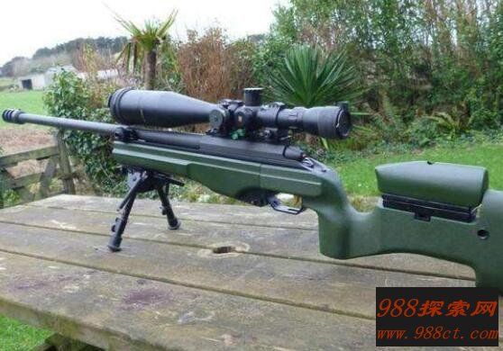 这把枪被称为名副其实狙击步枪之王,击打能力胜过任何一个步枪。它由欧洲军事强国英国所发明,全长1.3米,枪重量达到6.8千克。曾经在阿富汗战争和伊拉克战争中,此枪被广泛应用在特种部队中,能够对敌人在2475米开外直接一枪毙命,杀伤力特别凶猛。