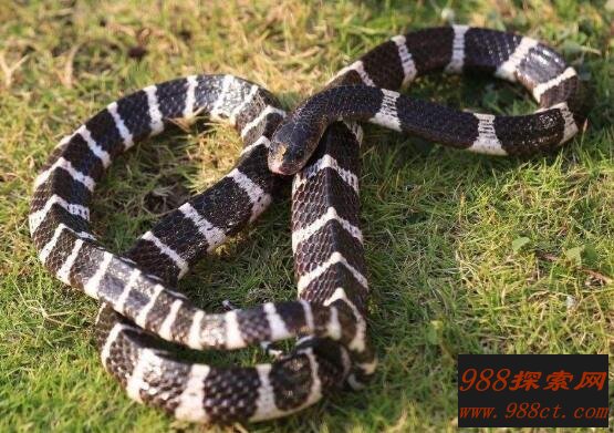 银环蛇被称为陆地第四大毒蛇,毒腺较小毒性猛烈,能够释放出两种神经毒素,能轻易麻痹敌人;若是中毒量比较多,致死率非常高,例如只需要0.08毫克,就足以毒死一个人。银环蛇体长1-1.8米,背面黑色和蓝黑色,腹面污白色,性情较温和,很少主动攻击人。