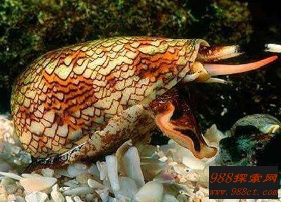 芋螺是一种生活在暖还软体动物,我们在珊瑚礁、沙滩上经常看到它活动。它外表色彩斑斓,十分美丽。可是在美丽外表上藏着一颗有毒心,它体内含有剧毒物质,从毒牙中释放出毒素,这些毒素足以杀死一个成年人。