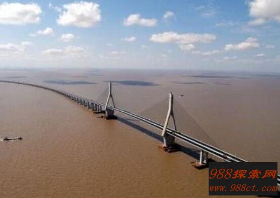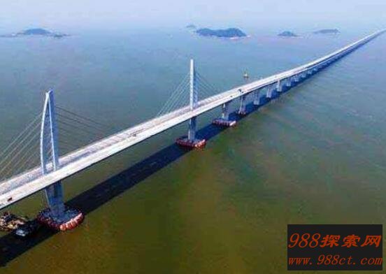这座大桥位于浙江舟山、宁波,从1999年动工到2009年完工运营花了整整10年时间,横跨4座岛屿,翻9个涵洞,穿2个隧道,全长为48.16公里,耗资130亿人民币,是世界规模最大的岛陆联络工程。