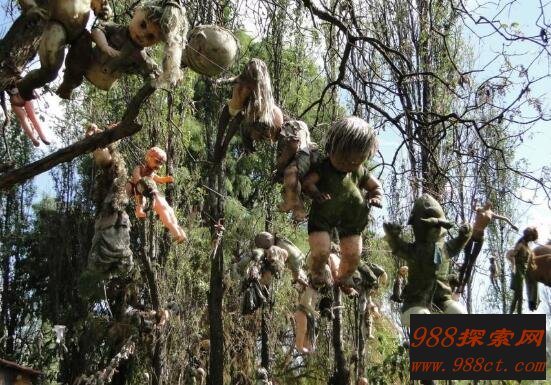 娃娃岛坐落在墨西哥,关于它名字来历起源这个故事,很久以前有一位小女孩意外淹死在这座岛湖中,后来人们为了悼念这位小女孩逝世,于是每家每户都拼凑布娃娃,并将其挂满整个小岛。后来随着娃娃随着时间消磨,已经分解大部分娃娃没有眼睛和手,恐怖气息笼罩整个小岛。