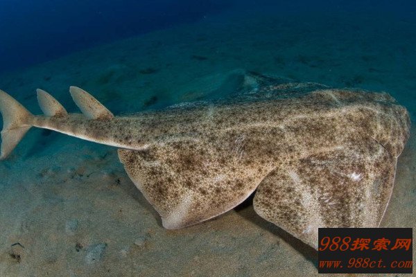 太平洋扁鲨又被称之为“天使鲨”,这种鲨鱼的体长最多可以达到1.5米,体重能达到接近30公斤左右,背腹扁平,有着宽阔的像翅膀一样的胸鳍,还拥有优美的游泳姿态,但是其数量急剧减少,因为从上世纪70年代开始,人们就开始大规模捕杀太平洋扁鲨,目前在全球范围内属于近危物种。