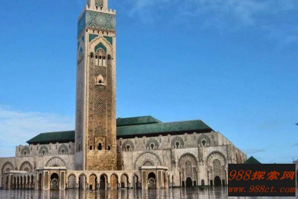 哈桑二世清真寺位于摩洛哥王国的卡萨布兰卡市区西北部,它的建造于已故国王哈桑二世有直接关系,动工修建的时间为1987年,耗资5亿多美元,占地面积约9公顷,可同时容纳10万人祈祷。