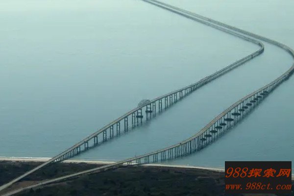 美国切萨皮克湾大桥的长度为37公里,这是一座双向越洋大桥,在大桥的中间,有一座人工岛,这里能够观看到海运航道上的壮观景象,还能够钓鱼,所以每年都有很多人来此处参观。