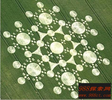这个一夜之间出现在方圆8平方公里的麦地里,似乎是从天而降了410个有规则的圆圈,这些圈圈共同构成了一个直径约280米的精美图案。这一麦田圈的出现震惊了世界各地的人,英国麦田圈组织甚至悬赏10万英镑想要找到能够复制这一麦田圈图案的人,只是至今还未有一人能够拿到这一奖金!
