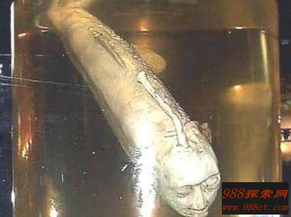 日本的博物馆里面总是有一些诡异的怪物,看看上面的人面鱼,就是泡在日本某个博物馆的福尔马林里面。而这条长着人脸的鱼也看不出是什么样的品种,通体白色(也有可能是福尔马林泡太久了),头上还有一根像是灯笼鱼一样的头灯,本来鱼头的地方却是一张诡异的人脸。这条日本人面鱼的来历也不得知,日本真是有很多怪异的东西。
