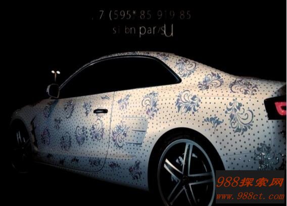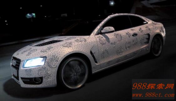 战斗民族俄罗斯也是毫不逊色,据说他们的一位富二代,亲自花费了50万卢布(五万元),把自己买来的奥迪A5改装了一下,不过他显然很鸡贼的,这位富二代美怎么去修改这款奥迪A5的引擎、轮胎。反而是用上了了整整46万颗施华洛世奇水钻石装上了这款车的外部。
