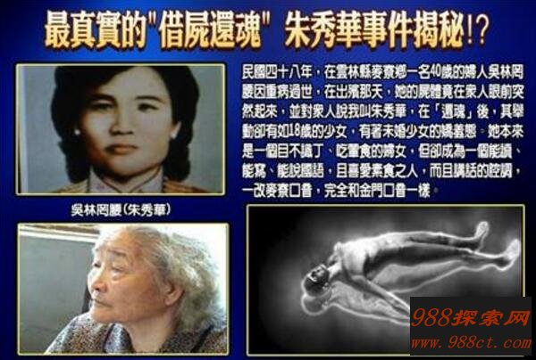 当时林罔腰的先生吴秋在家中休息,突然发现她的太太走着走着就不省人事了,于是他立即把自己的太太送往了医院,结果发现她已经因为不明原因已死亡了,而在林罔腰出殡那天,她的尸体竟在众人眼前突然坐立起来了,并对众人说我叫朱秀华,我已借助林罔腰的身体复活。