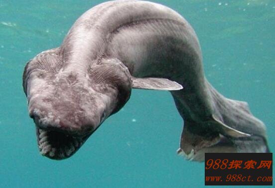 皱鳃鲨是一种最原始的鲨鱼,具有活化石之称。其体长为1.5米,身体两侧各有六条鳃裂,鳃间隔延长而褶皱,相互之间是覆盖的。嘴巴在最前端,吻非常短。这种鲨鱼在捕食上最十分凶猛的,但是不会攻击到人类。