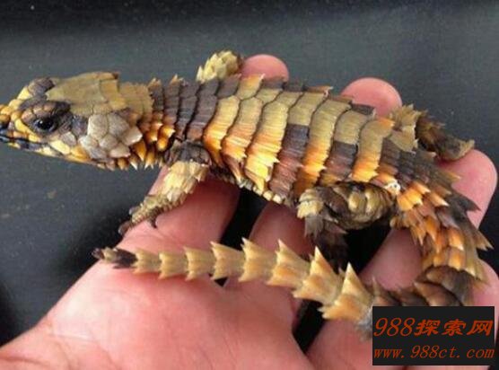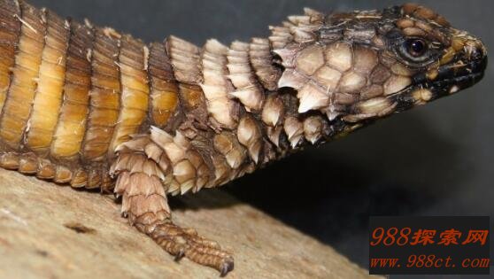 首先我们先来看看这种蜥蜴的外表形态特征,其分布范围主要是来自南非地区。身长平均为75-90毫米,最长可达到近105毫米。当你看到它的外表,浑身布满了盔甲一样巨大的鳞片,颜色通体为暗黄色。