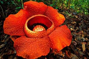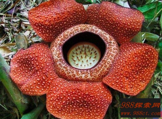 食人花又称之为大王花,是世界上最大的一种花朵,所以有着世界花王的美誉。大王花直径能达到1.5米,花瓣厚为1.4厘米。一朵花有五个花瓣,叶片长为30厘米。形态上十分娇艳,花形如同日轮。