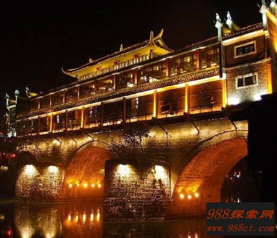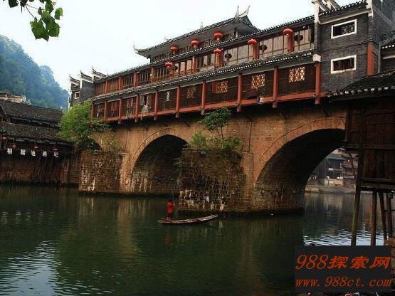 众所周知虹桥是凤凰古城一座标志性建筑,对于它的来历有着一个悠久历史传说。明朝开国皇帝朱元璋在一天晚上作了一个噩梦,在西边有一座形似凤凰的山将会出现真命天子,这位真命天子会来夺取它的帝位。于是命令神算子刘伯温去寻找这个地方。
