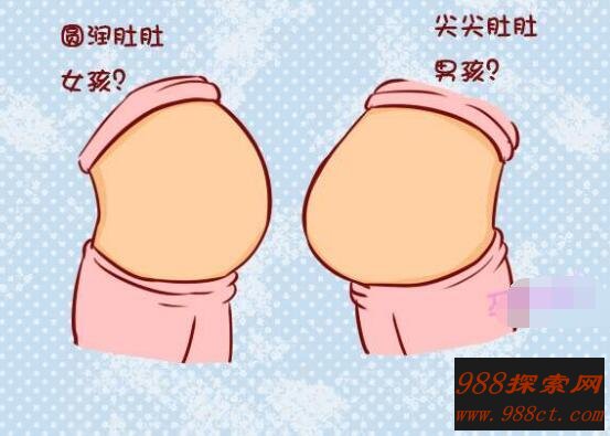 我们还可以通过孕肚来判断,例如生女孩孕妇肚子,下端大多呈倒置的梯形状,线条比较突出有棱有角,梯形越明显准确期越高。生男孩孕妇肚子下端则比较圆滑饱满,没有那种突出的线条。孕妇肚脐内凹、肚脐线长多数为男孩;肚脐外凸、肚脐线粗则多数为女孩。