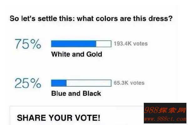 国外的很多网友对科学家的解释表示不够满意,于是找到了这条裙子的实物想要一探究竟,当他们买回来裙子之后,发现上面是蓝色和黑色的条纹,但要知道,当时欧美关于这条裙子颜色的投票显示,每100个人中,有76个人觉得他是白金色,这件事再次证明真理往往掌握在少数人手里。