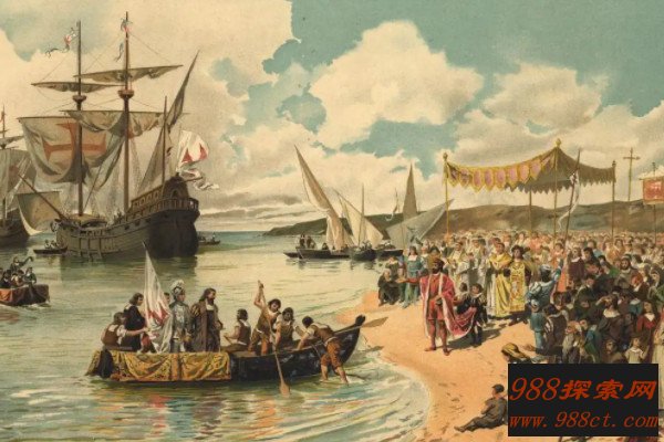 在1492年8月3日的时候,哥伦布受西班牙女王的派遣,带着印度君主和中国皇帝的国书,率领三艘百十来吨的帆船,从西班牙的巴罗斯港扬帆起航,径直向正地方驶去,经过七十个昼夜的艰苦航行,在1492年10月12日凌晨终于发现了陆地,之后,他们又先后登上了美洲的众多海岸。