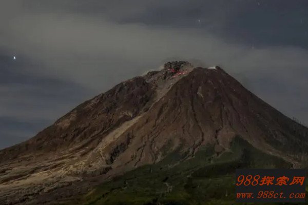 锡纳朋火山位于印度尼西亚北苏门答纳岛,近年来,它一直处于极不稳定的状态,苏醒后开始猛烈爆发,已经造成数人死亡,喷出的火山灰可高达4500米,非常致命。