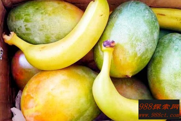 将成熟的香蕉放进袋子里,然后放入未成熟的芒果,接着把袋口扎紧,这样成熟的香蕉就会散发出乙烯,可以将芒果很快地催熟,一般间隔2-3天左右就会得到成熟的芒果。