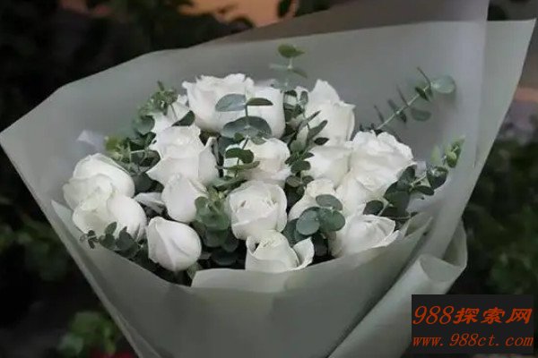 赠送白玫瑰花时,不同数量的花束代表的含义不同,1朵白玫瑰代表你是我的唯一,9朵白玫瑰代表爱情长长久久,11朵白玫瑰代表我对你的爱一心一意,19朵白玫瑰代表永远相爱,选择白玫瑰花束时,可以搭配桔梗、尤加利叶或者是银叶菊等。