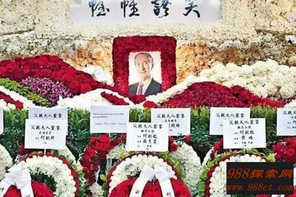 赌王何鸿燊葬礼中除了扶灵名单非常豪华之外,也有许多娱乐圈中的认识前来送上花圈和挽联,例如钟楚红、杨紫琼、周润发等明星送上了花圈,谢贤、汪明荃、成龙等明星也亲自到场,这场盛大的葬礼据说花费了三千万港币,仅布满现场的鲜花花费就超过200万港币。