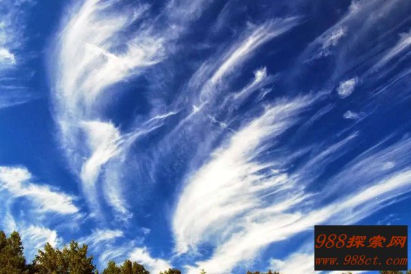 民间有一句谚语是“天上钩钩云,地上雨淋淋”,而这句谚语中的钩钩云在气象学中被称为钩卷云,它通常是在海拔千米的对流层出现,云体呈现出很薄的白色云,云丝往往平行排列,向上的一头有小钩或小簇,下有较长的拖尾,很像标点符号中的逗号,钩卷云出现时,刮风下雨是常见现象。