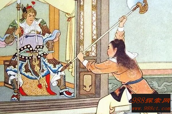 只见杨戬运转神通,使出法天相地本领,挥动三尖两刃刀便向桃山劈去,一阵天崩地裂般的巨响,震得杨戬连连后退,等他稳住身形,定睛观看,却见那桃山在一片光华笼罩中安然无恙,因为玉皇大帝早知杨戬会来救母,已将桃山炼化,只能用开山斧劈开。后来杨戬踏遍千山万水,终于寻得开山斧,将母亲救了出来。