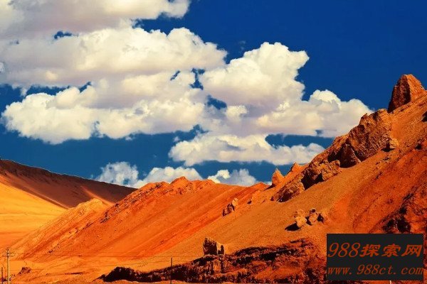 吐鲁番火焰山位于新疆吐鲁番市吐鲁番盆地的北缘,是古时候丝绸之路的北道,呈东西走向,整个火焰山的长100多公里,最宽的位置达10公里,平均海拔在500米左右,由于气温比较高,火焰山寸草不生,飞鸟匿踪,尤其是盛夏时节,山体在阳光的照射下就像是烈焰熊熊。