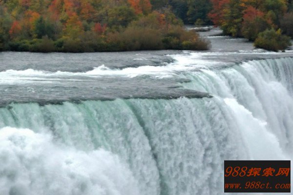 尼亚加拉河的水流冲下悬崖,至下游重新汇合,在不足2公里长的河段里,以每小时35.4公里的速度跌荡而下,形成了15.8米的落差,它演绎出了世界上最狂野的漩涡急流。该瀑布经过左岸加拿大的昆斯顿、右岸美国的利维斯顿,冲过“魔鬼洞急流”,最后由西向东进入安大略湖。