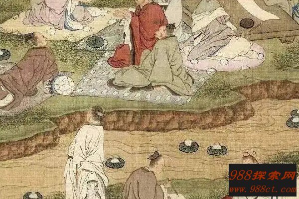 曲水流觞就是将煮熟的鸡蛋放在河水中,任由其漂浮,谁要是捡到了谁就吃掉。后来就变为文人雅士的一种活动,把盛着酒的杯子放在流水上,停在谁面前,谁就要将杯中酒一饮而下,并赋诗一首,否则罚酒三杯。魏明帝还专门为了这个活动建立了一个流杯亭。