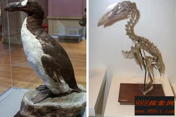 大海雀是大海雀属中的大型游禽动物,外观上与企鹅相似,都是以黑白色为主,根据已知的资料可以得知,大海雀曾经在大西洋周围的岛屿上广泛分布,由于人类的屠杀导致大海雀在1844年7月3日彻底灭绝,世界上最后一对大海雀在孵蛋期间,在冰岛附近的火岛上被人类残忍的杀害制作成标本。