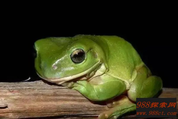 老爷树蛙的学名叫绿雨滨蛙,是雨滨蛙属中体型较大的树蛙,也是最肥大的树蛙种类,而大多树蛙都含有毒素,老爷树蛙也不例外,不过它们的毒素比较微弱,不会对人体造成危害,反而能分泌出可以破坏艾滋病原体的缩氨酸成分,具有一定的科学价值。