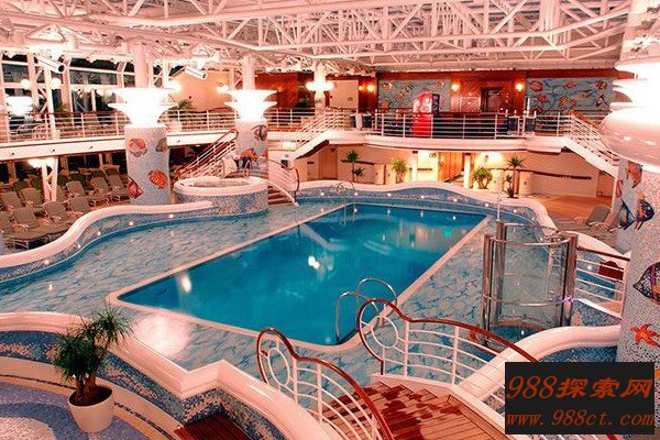 邮轮为游客提供满足其旅游观光、休闲度假等需求的服务,包括旅游活动的组织、产品线路的设计、景点导游讲解等,还提供给游客健身娱乐场所,比如舞厅、理容中心、阳光甲板等。