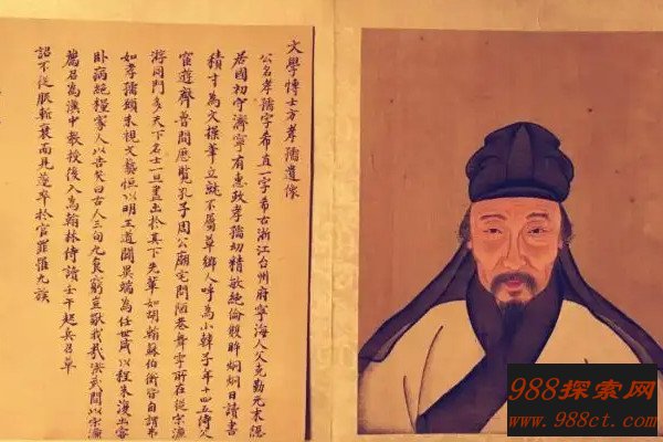 方孝孺字希直,号逊志,被称为“正学先生”,是明朝大臣、文学家、思想家、散文家、学者,台州府宁海人。方孝孺年幼的时候机敏好学,行动敏捷,两眼炯炯有神,喜爱读书,每天读书超过一寸厚,同村的人称他为“小韩愈”,成年后的他跟着宋濂学习,而宋濂门下的知名文人都不如他聪慧。
