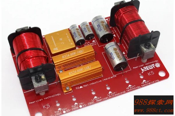 从分频器电路方面的结构来看,他在本质上是通过电容器和电感线圈构成的LC滤波网络,高音通道中的是高通滤波器,中银通道则只是一个带通滤波器,另外分频器位于功率放大器之后,连接简单,使用方便,但消耗功率会出音频鼓点。