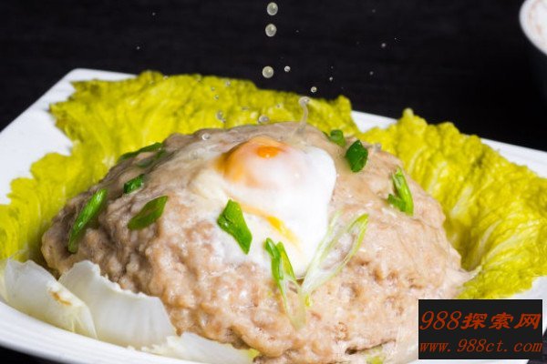 咸蛋蒸肉饼是广东传统的特色名点,它将咸鸭蛋和猪肉糜拌在一起,然后蒸成肉饼,散发出特别的咸香味,其中具有各种矿物质以及微量元素,对骨骼发育很有帮助,还能预防贫血。