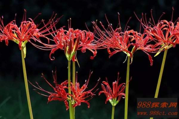 据说彼岸花是一种需要用血养殖的花卉植物,传闻彼岸花可以通灵,如果将自己的血液滴在花朵上面,就可以通往地府之中,集中精神的话还能看到很多奇异的东西,那些都是来自阴间的魂魄。彼岸花经常开在坟头,听老一辈的人说,最好不要轻易采摘,否则就会有鬼魂缠上你。
