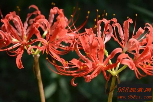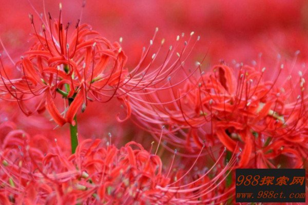 彼岸花在朝鲜地区很常见,被朝鲜人民当做为互相思念的花卉,一般表示相见却不得见的遗憾,植株的叶子和花朵交错出现,永远不会同时绽放,就像两个无法相见的人,带着无尽的思念留存于世。