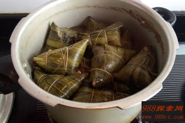 另外煮粽子的时候粽子的捆扎是有讲究的,比如豆沙粽不能够捆绑的过紧,不然米粒会挤到豆沙中,要是煮不透易出现夹生情况。而用肥猪肉的肉粽松紧适度即可,用瘦肉的肉粽则需扎紧,因为瘦肉煮熟后会收缩,其汁水会漏到水中,只有捆紧了才能保证口感。