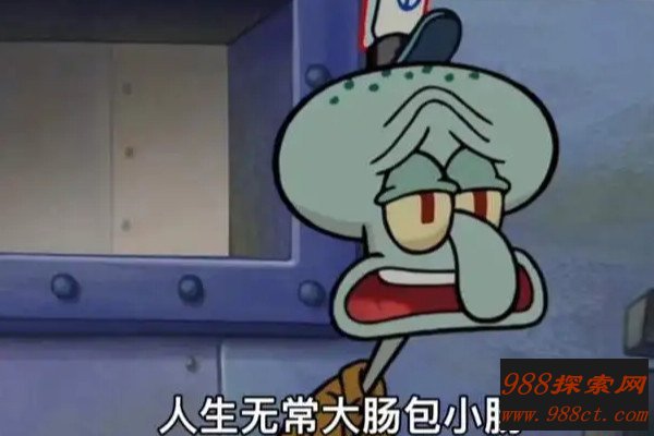 注意这里的大肠包小肠不是小吃,这句话出自于电影版《海绵宝宝》中章鱼哥的台词翻译,用来感慨自己的生活,表达一种遗憾的含义,之所以会成为流行语是因为这句话足够沙雕。