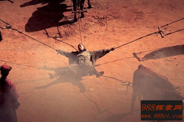 车裂就是我们口中常说的五马分尸,即把受刑人的头和四肢套上绳子,然后绑在五匹马上,让它们从五个不同的方向疾驰,此时人的肢体就会被扯得四分五裂,有人说历史上著名的商鞅就是因为车裂而死。